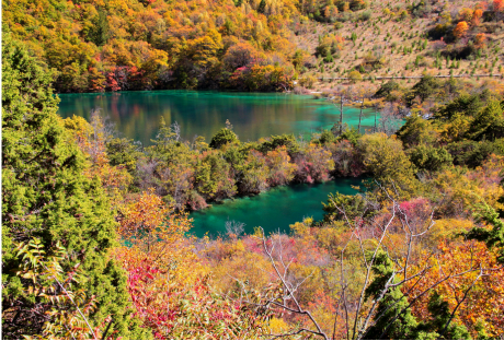 2.前往游览【九寨沟国家森林公园】日则沟的箭竹海、熊猫海、五花海、镜海、珍珠滩、珍珠滩瀑布;游览则渣洼沟的长海、五彩池;树正沟的诺日朗瀑布、犀牛海、老虎海、树正瀑布、树正群海、卧龙海、火花海芦苇海、盆景滩。
