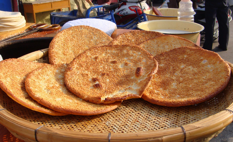 青稞饼是用青稞面调制烘烤而成,色泽金黄,香甜可口。
